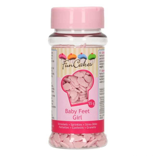 De roze FunCakes babyvoetjes mogen niet ontbreken als je baby shower organiseert of natuurlijk zelf een kleintje verwacht. Gebruik de babyvoetjes girl voor het versieren van geboorte (mini) cupcakes, koekjes, taarten en andere traktaties.