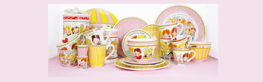 Alle illustraties ontwerpen Femque en Janneke zelf, tegenover elkaar aan tafel in hun atelier. Zij werken met liefde en heel veel plezier. Wereldwijd herken je inmiddels hun touch of Blond. De blozende, kleurrijke stijl. Met rake tekstjes. En altijd een twist. Aanvankelijk verschenen de illustraties alleen op serviezen.