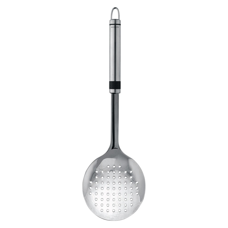 Afschuimen van bouillon of jus met een gewone lepel wordt een knoeiboel. Gebruik daarom de Brabantia Profile schuimspaan met geperforeerd roestvrij stalen blad; daarmee verwijderd u alles wat er niet in hoort.