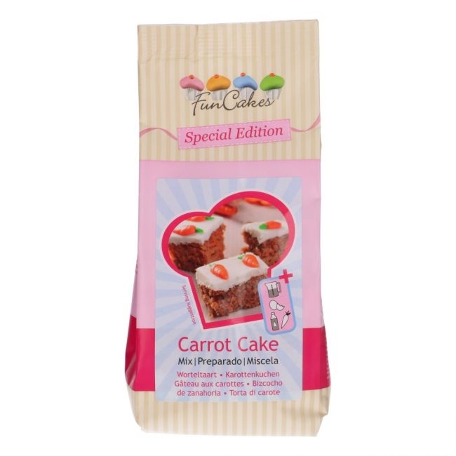 De combinatie van een kruidige wortelcake met een frisse cream cheese frosting is heerlijk! Met deze Special Edition mix van FunCakes kun je in een handomdraai zelf een lekkere Carrot Cake op tafel zetten. Serveer hem op een koude dag bij de koffie. Maar ook als onderdeel van een high tea komt hij helemaal tot zijn recht!