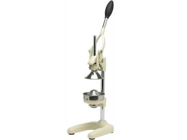 Liever met de hand persen? Deze prachtige, robuuste Cilio citruspers is eigenlijk bedoeld voor in de horeca, maar is ook steeds meer terug te vinden in de thuiskeuken. De hendel slaat dankzij de vering vanzelf terug zodat je de hendel steeds maar één keer hoeft over te halen. De roestvrij stalen kegel is speciaal ontworpen voor nagenoeg alle soorten citrusvruchten. Door de zware poot met zuignappen blijft hij goed op z’n plek staan tijdens het persen. De hefboom zorgt er voor dat je weinig kracht nodig hebt bij het persen. De perskegel en trechter zijn gemakkelijk eruit de draaien en kunnen dus goed schoongemaakt worden.