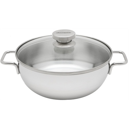 Deze conische braadpan is blijvend zilverwit dankzij de Silvinox-behandeling. Hierdoor zal de pan ook jarenlang mooi blijven. Deze braadpan is ideaal voor iemand die op zoek is naar een lichter materiaal dan gietijzer. De pan is gemaakt van 7-PlyMaterial waarbij o.a. roestvrijstaal en aluminium gebruikt zijn voor een optimale warmteverdeling tot aan de rand van de pan. De glazen deksel zorgt ervoor dat vocht, smaak en vitamine behouden wordt.