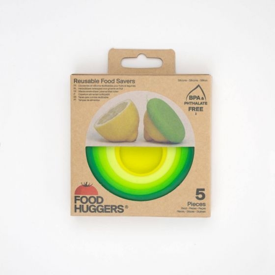 De Food Huggers zijn vervaardigd van voedselveilig, BPA-vrij silicone. De Food huggers komen in diverse maten waardoor u altijd de juiste vorm heeft om uw eten vers te bewaren. Dankzij de opvallende kleuren van de Food Huggers vallen uw bewaarde producten extra goed op. Na een week de Food Hugger te gebruiken, kan het product tot bijna 23% meer vocht vasthouden. Met de Food Huggers reduceert u afval van vershoudproducten zoals plastic of andere folies. Te gebruiken in de diepvries en magnetron.