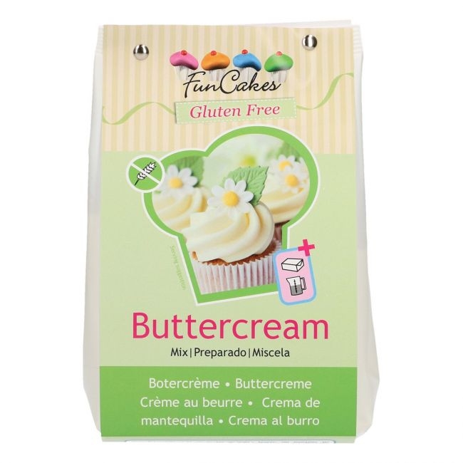 Met deze glutenvrije mix van FunCakes kun je een heerlijke romige botercrème maken! Ideaal als topping op cupcakes of als vulling in je biscuit. Voeg naar wens een smaakje toe.