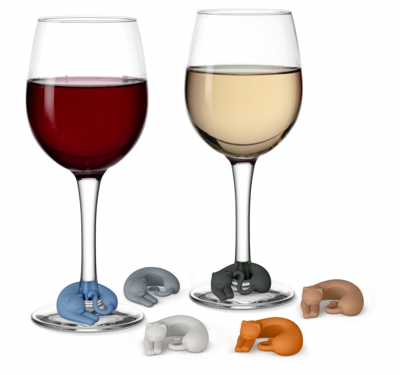 Voor de echte katten en wijn liefhebbers, katjes als wijn markers. Zo herken je altijd je eigen wijn glas.