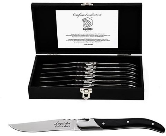 Laguiole Style de Vie Luxury Line Steakmessen Zwart Ebbenhout. Set van 6 luxe steakmessen in een mooi houten opbergkistje.
