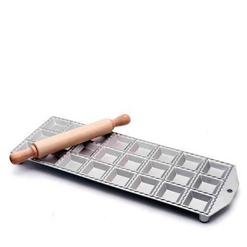 De mal is inclusief houten rolstok en is goed voor 24 ravioli’s van 4 cm.