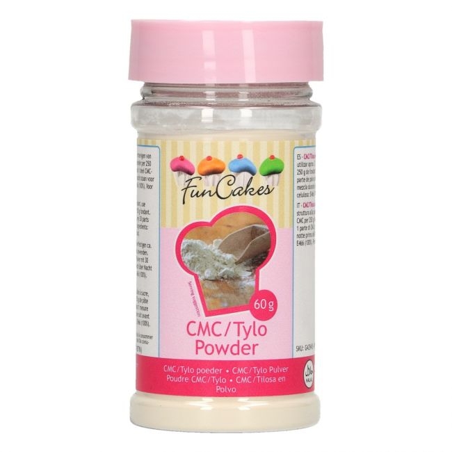 De FunCakes CMC – Tylo Poeder kun je toevoegen aan je fondant om deze te verstevigen. Daarnaast kun je de CMC – Tylo Poeder ook gebruiken voor het maken van je eigen eetbare lijm.