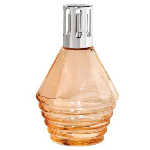 Deze moderne Lampe Berger is van gevernist glas, gedecoreerd met facetten.