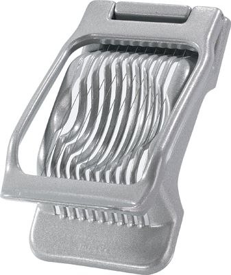 Met deze eiersnijder van Westmark is het wel heel eenvoudig om eieren te snijden. Met dit handige keukenapparaat snijdt u eieren in mooie ovalen plakjes. De gebruiksvriendelijk ergonomisch gevormde handgreep maakt dit erg gemakkelijk. Het is gemaakt van hoogwaardig drukgiet-aluminium met speciale levensmiddel-veilige coating. De snijdraden zijn van roestvrije edelstalen. Door het materiaal is deze eiersnijder duurzaam maar ook stijlvol om te zien! De eiersnijder is 13,5 centimeter lang.