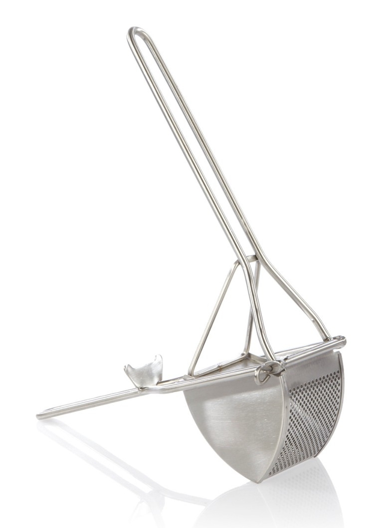 Triangle aardappelpers van Westmark, voor de eenvoudige toebereiding van onder andere aardappelpurree. Deze aardappelpers heeft ergonomische grepen met afstandshouder voor het veilig en comfortabel samendrukken.